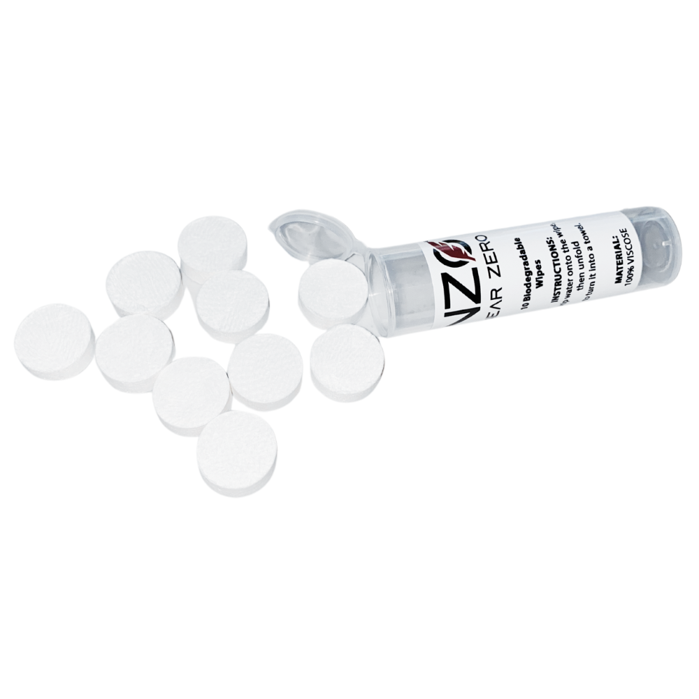 These wipes are great! Love how small and lightweight they are. At about the size of a nickel, they take up little space in your pack. Very easy to use on the trail or when camping. Just add water and you have an instant wet wipe. A must have for your hygiene hit!